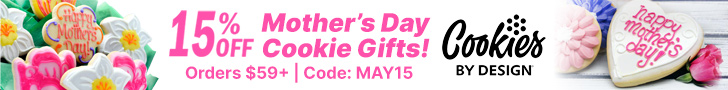 Give the gift of happiness and love this Mother’s Day with Cookies by Design. Order today and enjoy savings with the MAY15 promo code!