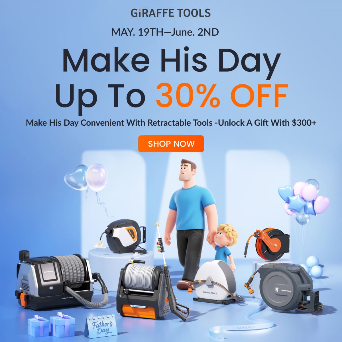 This limited-time promotion features discounts on top-rated Giraffe Tools gear — ideal for Father’s Day, birthdays, or any moment where you want to show appreciation. Engineered with smart retraction technology and durable materials, these products are designed for years of reliable use.