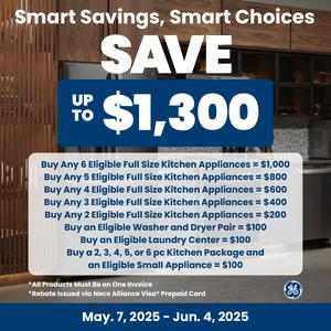 Ready to maximize your kitchen upgrade and minimize your expenses? The Smart Savings, Smart Choices promotion at Homery offers a smart way to earn major cashback on full-size kitchen appliances, washers, dryers, and more. With this tiered rebate offer, the more you buy, the more you save — up to $1,300 back on your purchase!